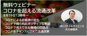 2020年8月19日13時半に AI流通革命3.0研究会会長大久保登壇 「コロナを超える流通改革」の 無料ウェビナーを予定しております。