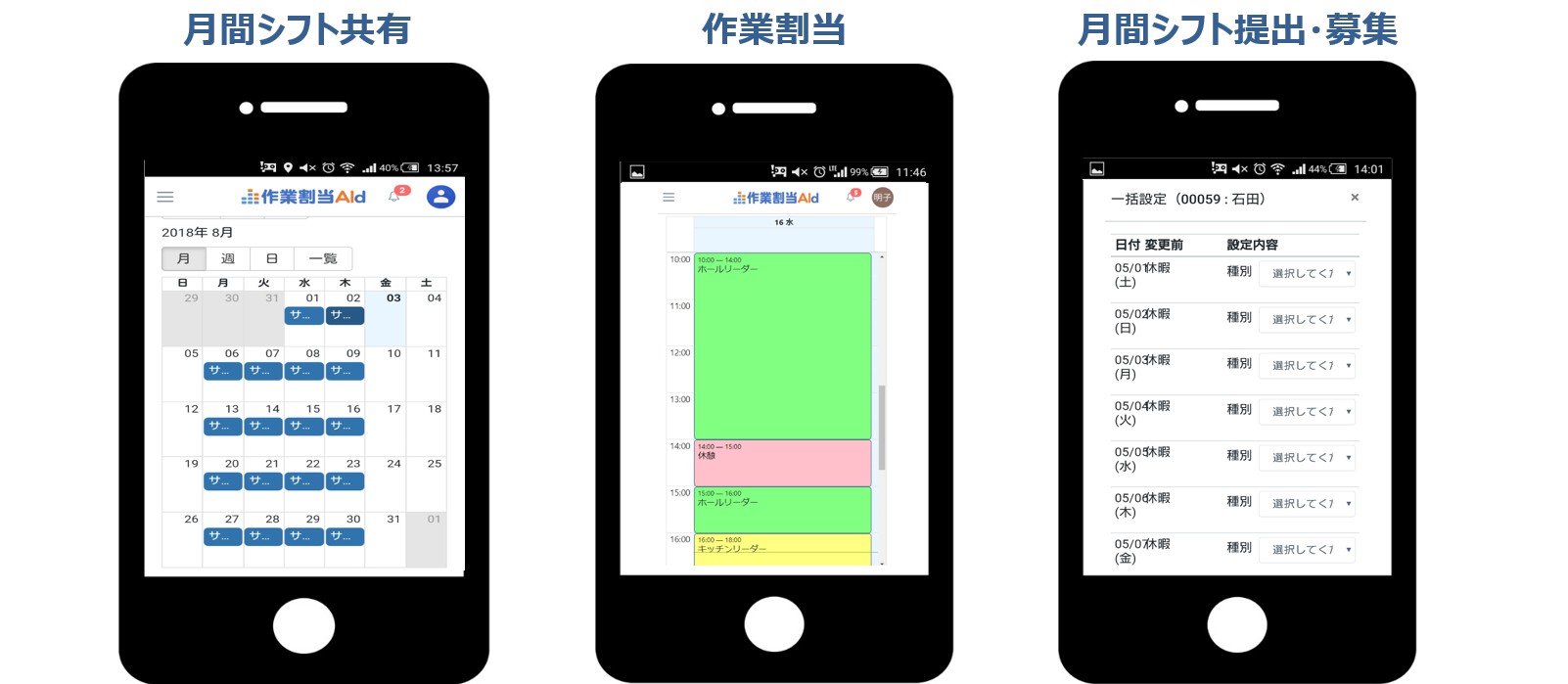 シフトの希望申請・調整・確認の全てがスマホから可能